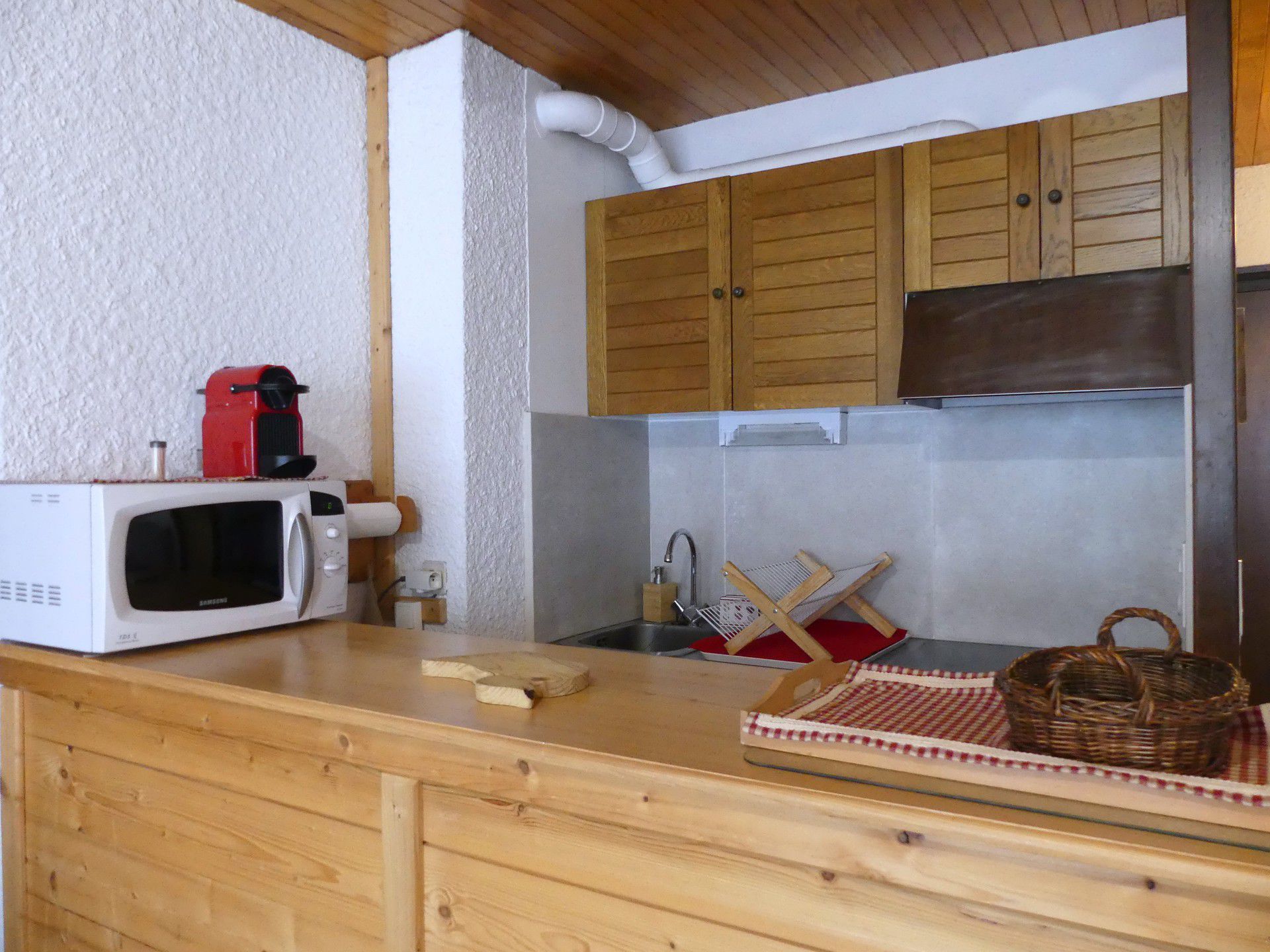COIN CUISINE avec lave-vaisselle, four, micro-ondes, 4 plaques électriques, hotte, réfrigérateur, petit congélateur, cafetière, grille-pain, bouilloire, raclette.