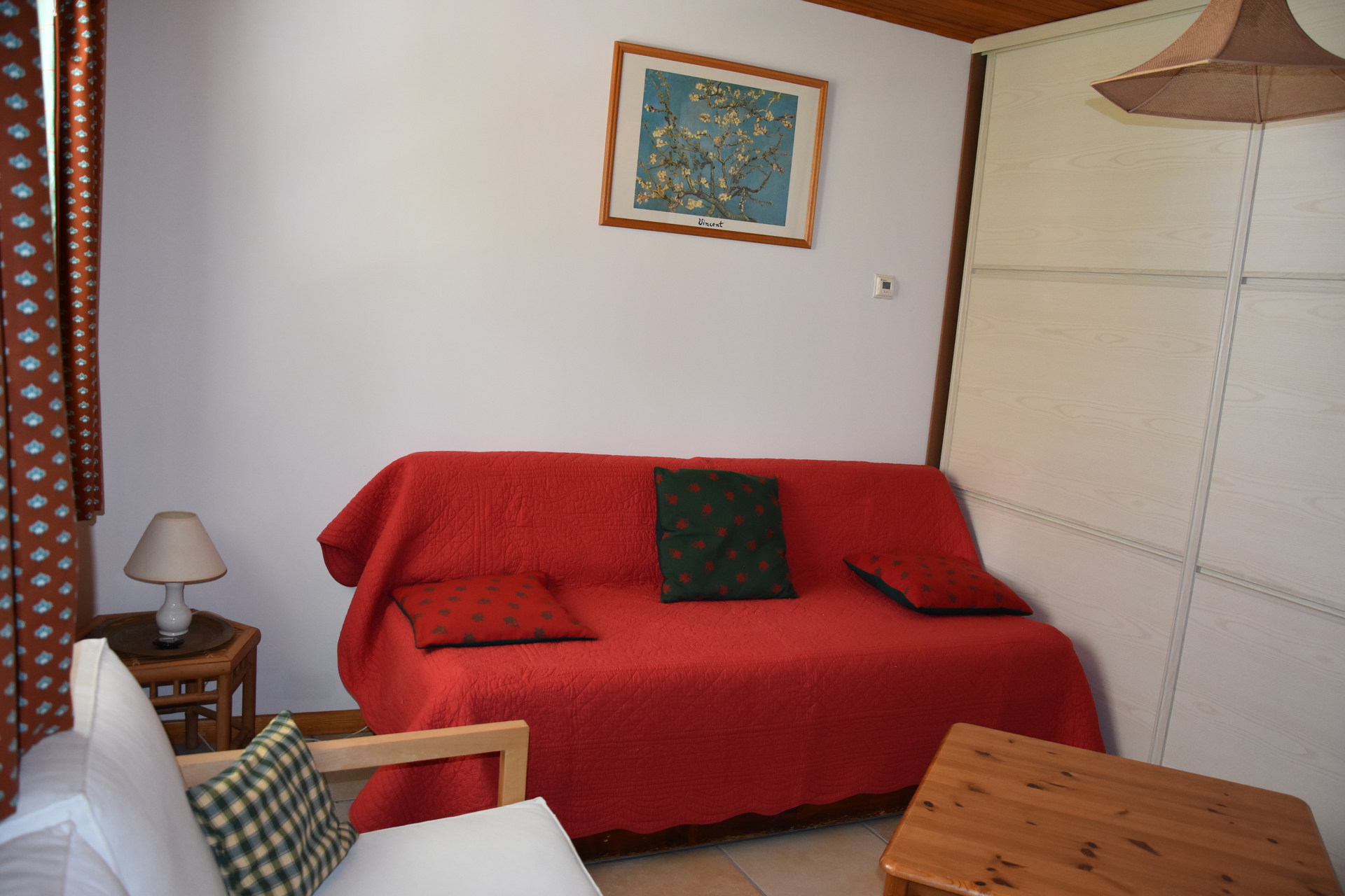 Salon avec 1 banquette gigogne (1 lit d'1 place), télévision.