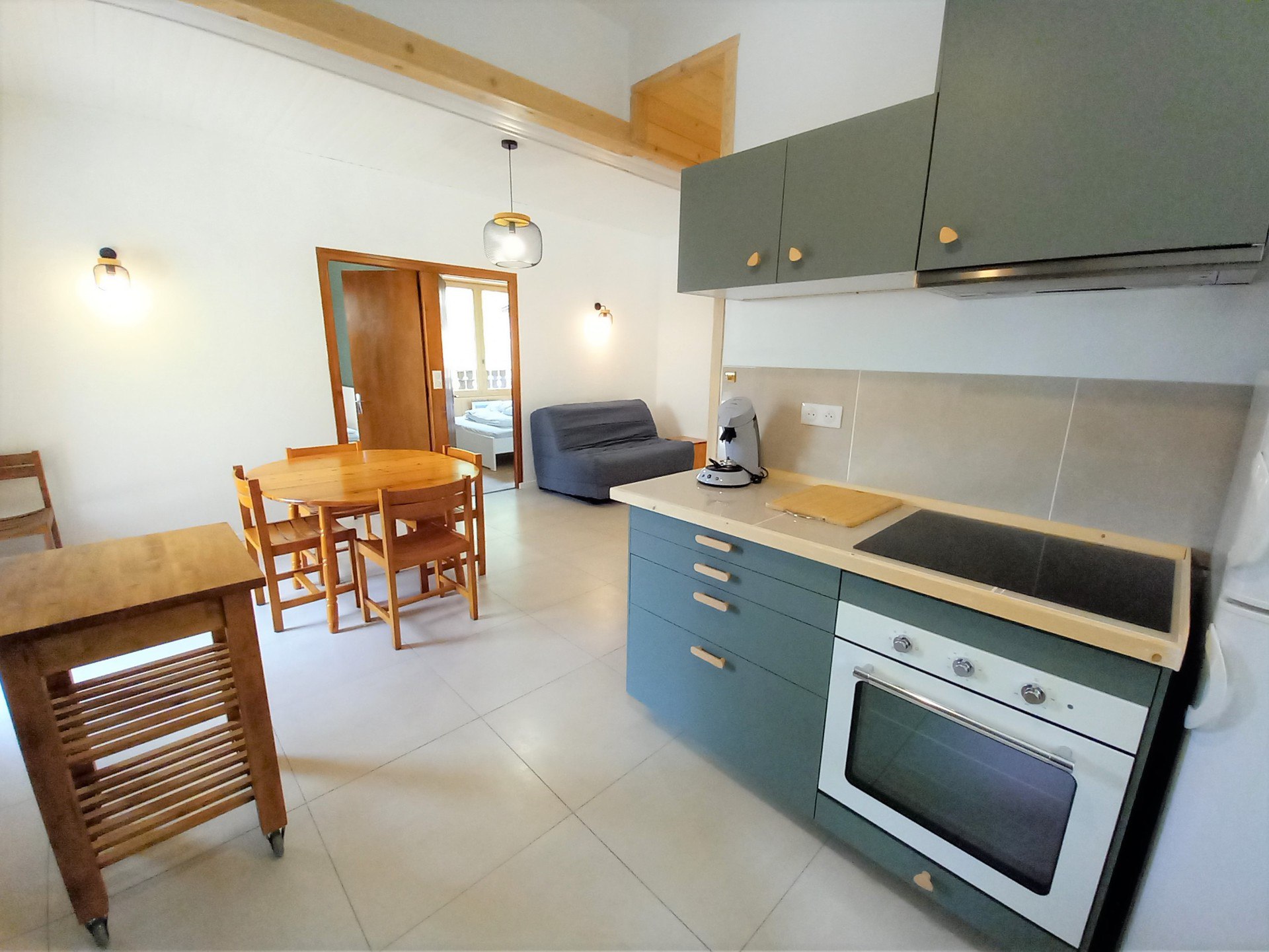 CUISINE : four traditionnel, réfrigérateur, congélateur, micro-ondes, lave vaisselle, plaques induction, machine à café Senseo, appareil à raclette, grille pain, bouilloire, appareil à crêpes