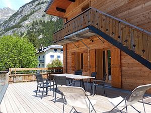 Mobilier de jardin en été (terrasse non déneigée en hiver)