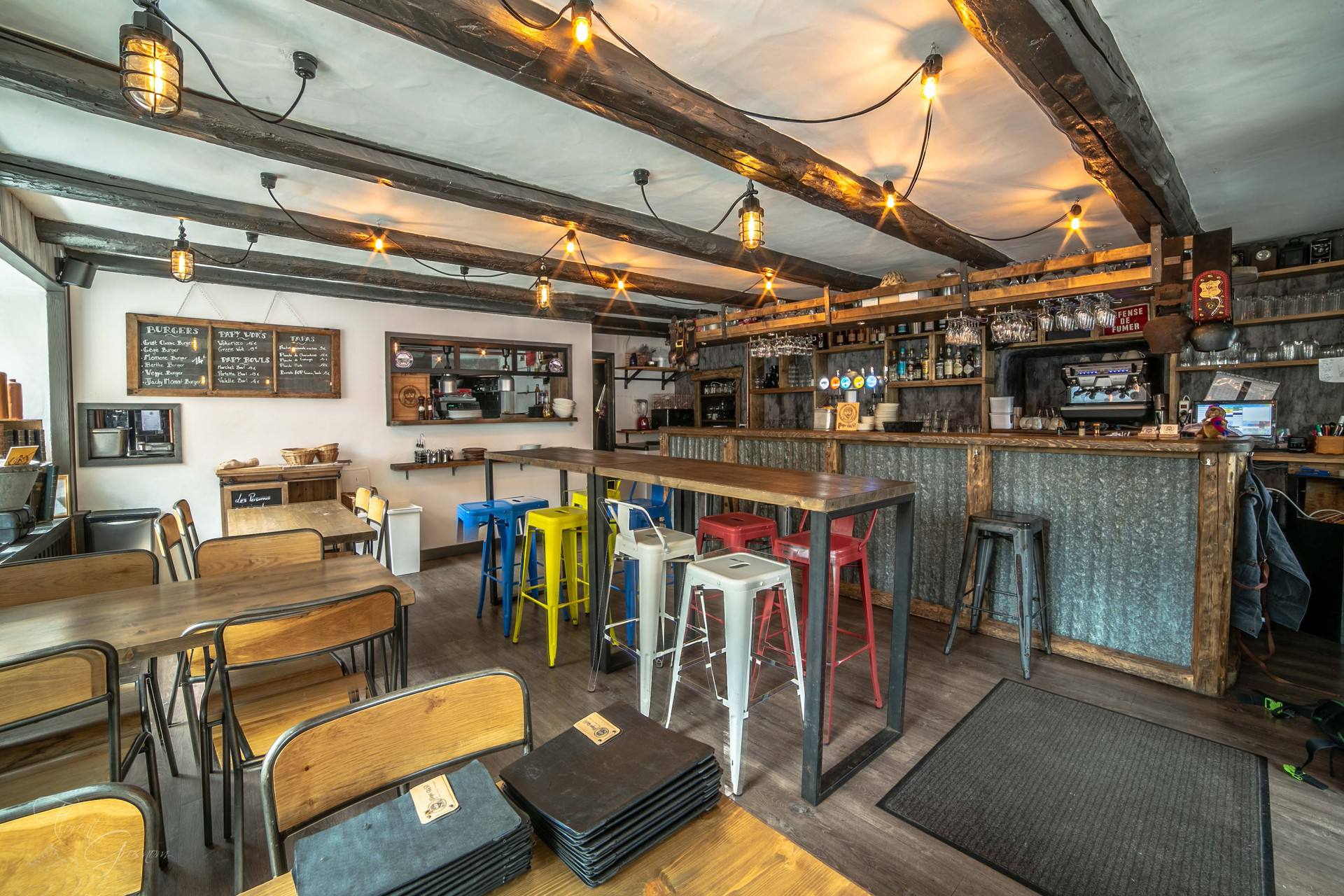 Chez Pépé Gust’, on profite de la vie : partager une cuisine bistro, trinquer, faire des rencontres, rire, festoyer…tout est possible, on peut même dormir chez lui! L’équipe vous propose une cuisine de saison, faite maison avec des produits locaux…la glace vient de la ferme d’à côté et la bière brassée dans la vallée! Suivez le clocher, le Bistro de Pépé est à côté!