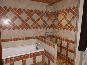 SANITAIRE 2 Salle de bains avec baignoire et douche, WC séparés.